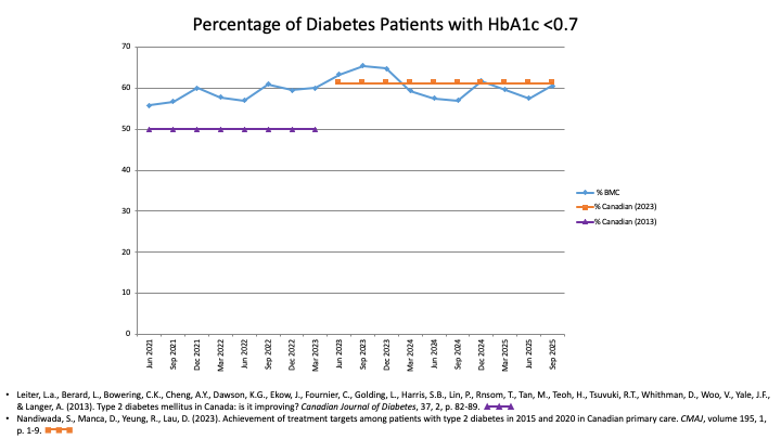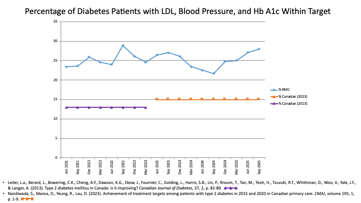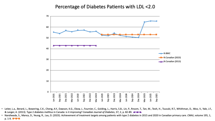 We take care to focus time and effort on determining how our patients are doing! Below are some of the ways we keep track of how we are doing. On a quarterly basis we determine how many of our patients with lifestyle diseases are within guidelines.